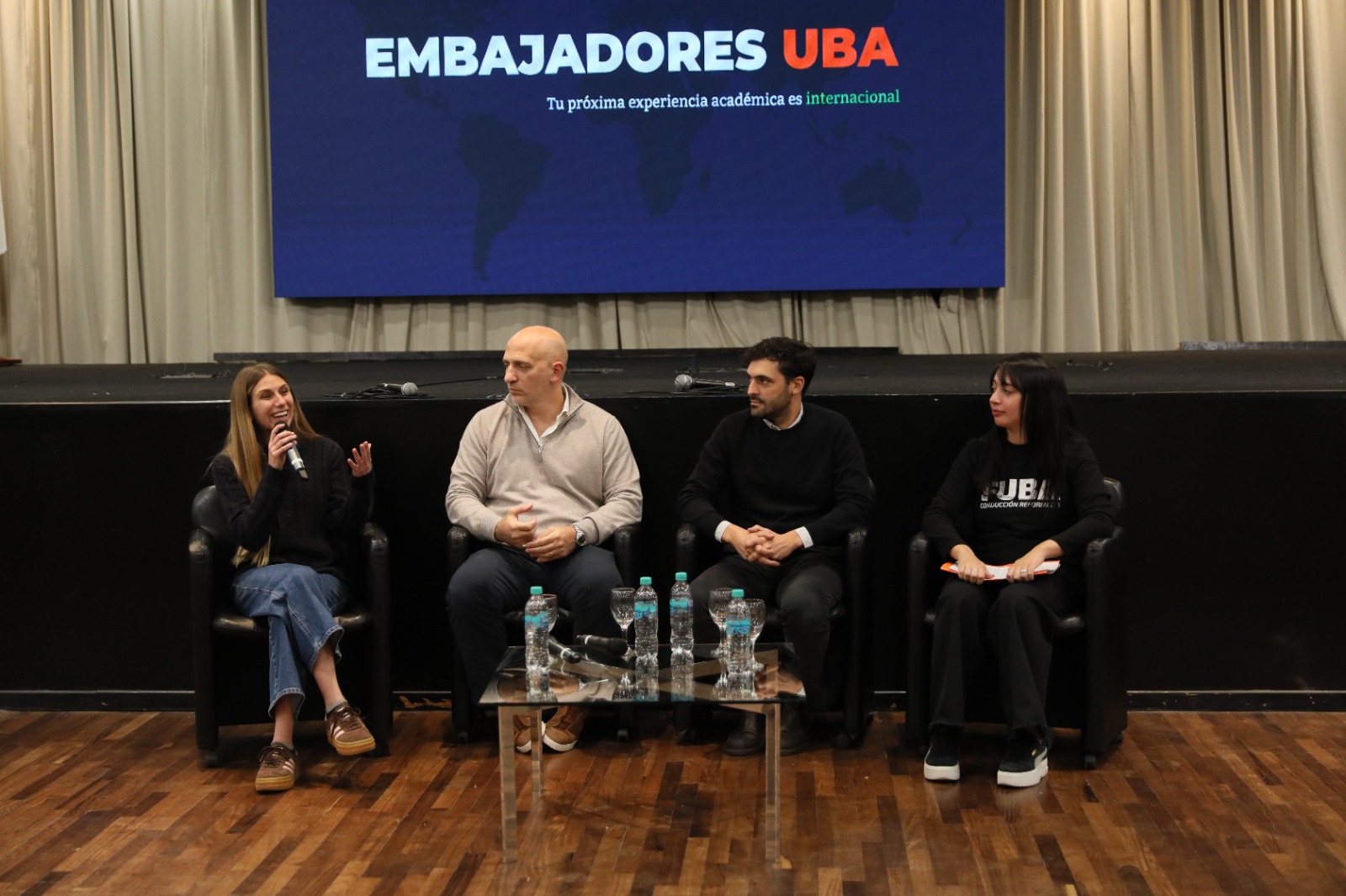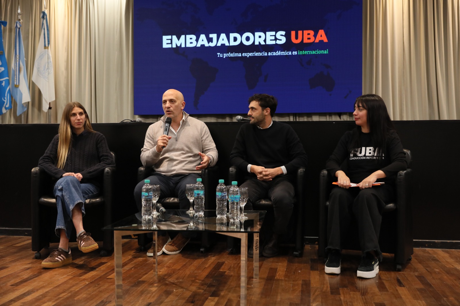 Encabezaron el acto, el vicerrector de la UBA, Emiliano Yacobitti; el secretario de Relaciones Internacionales, Patricio Conejero; la consejera Superior, Lucille Levy, y la presidenta de la Federación Universitaria de la Universidad de Buenos Aires, Priscila Vitale.