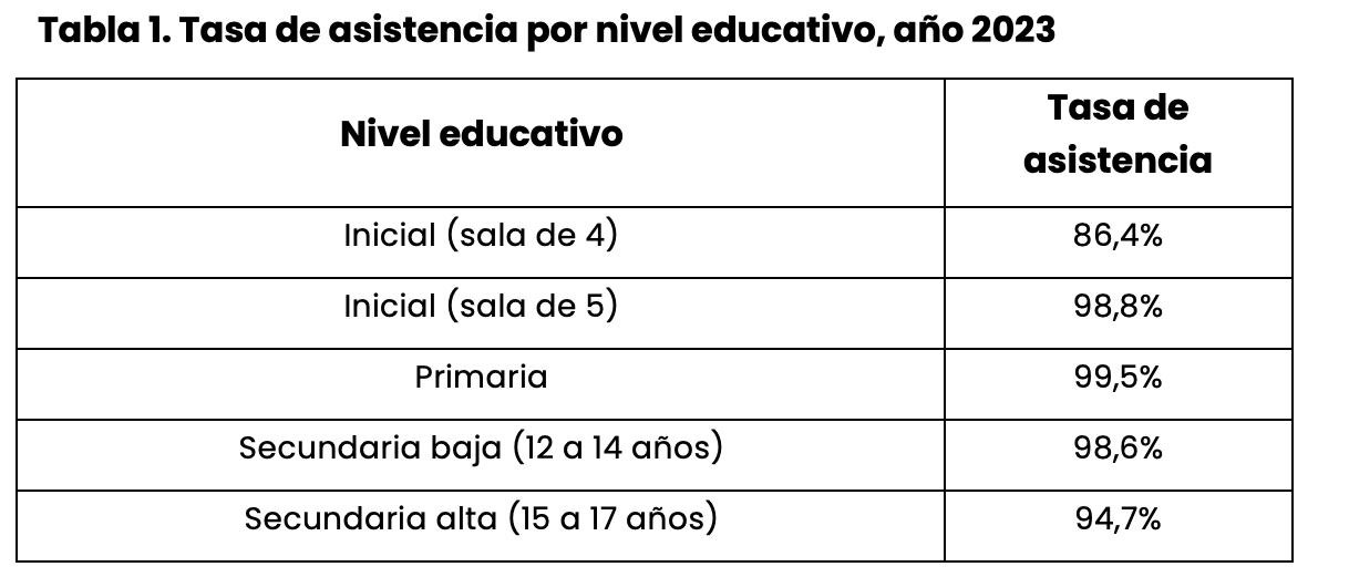 Nota: la tasa de asistencia es el porcentaje de estudiantes que efectivamente asiste a determinado nivel del sistema educativo en relación al total de la población correspondiente a ese grupo etario.