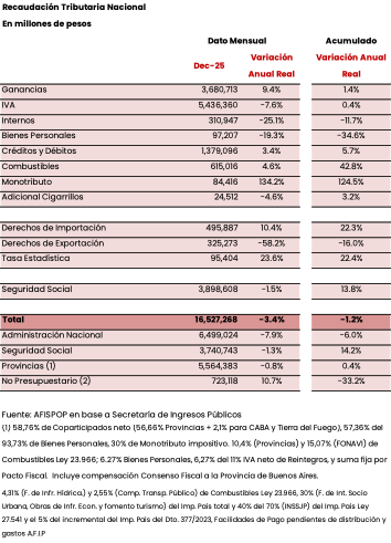 RECAUDACIÓN TRIBUTARIA NACIONAL DE DICIEMBRE 2025