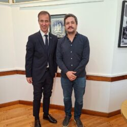 En el marco del Ciclo de Conferencias de Embajadores, el pasado 23 de septiembre la Facultad de Ciencias Económicas contó con la destacada presencia del Embajador de España en Argentina, Dr. Joaquín de Arístegui Laborde. Fue recibido por el Vicedecano de la FCE, Dr. César Albornoz; el Secretario de Relaciones Internacionales